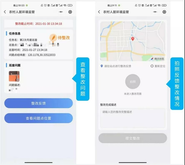 巡查问题点难找、整改信息不同步是乡村人居环境整改的痛点。美丽乡村长效管理督查一直以来都有各乡镇(街道)反映,部分督查通报反馈的问题不对等。网格员找不到需要整改点,整改后信息无法做到及时同步。